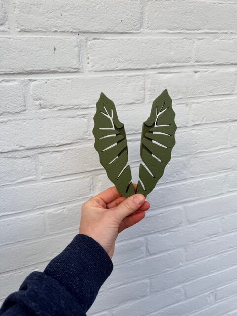 Deurgreep in vorm van een Alocasia plant voor de Ikea Milso indoor greenhouse kast.