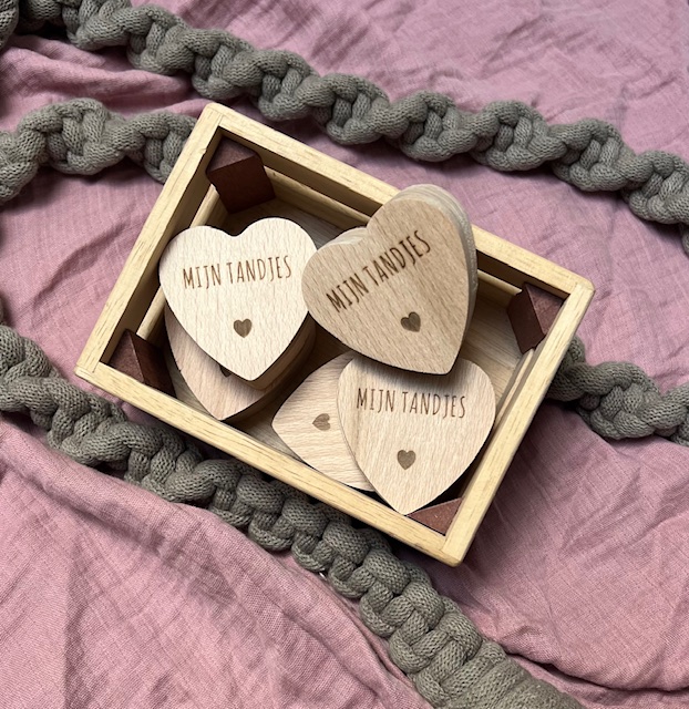 Houten hartvormig Tandendoosjes – Een Kostbare Bewaarplek voor Melktandjes